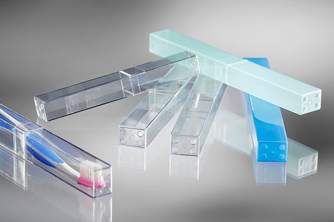 Köcher aus Polypropylen als Schutzverpackung zur hygienischen Lagerung von Zahnbürsten